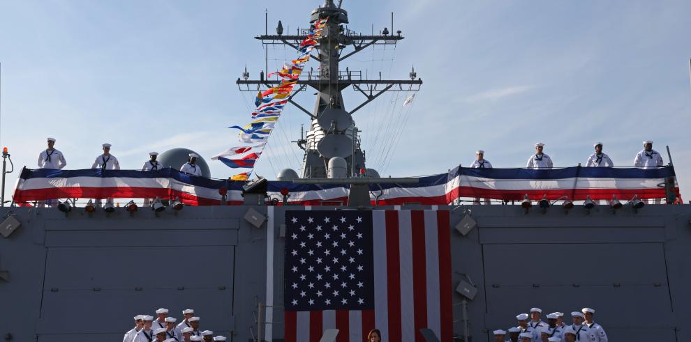 U.S. Vice President Kamala Harris delivers remarks during her visit to the USS Howard naval ship, at Yokosuka Naval Base, in Yokosuka, south of Tokyo Wednesday, Sept. 28, 2022. (Leah Millis/Pool Photo via AP) -