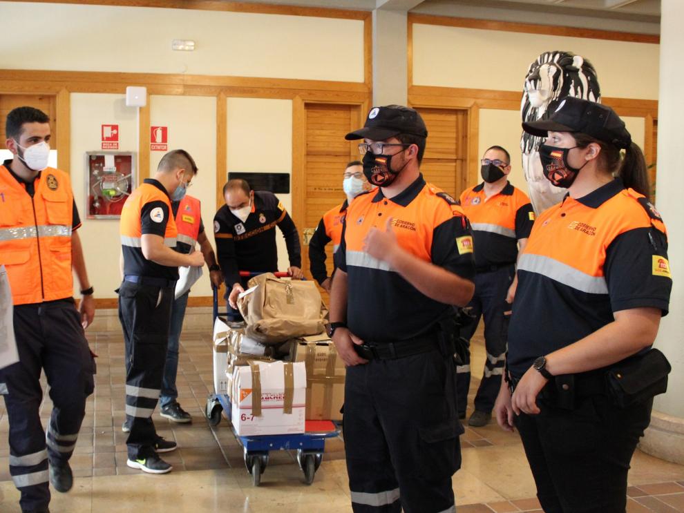 Voluntarios de Protección Civil del Somontano colaboran en el reparto de mascarillas